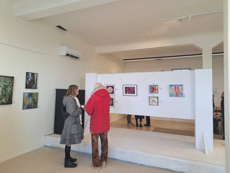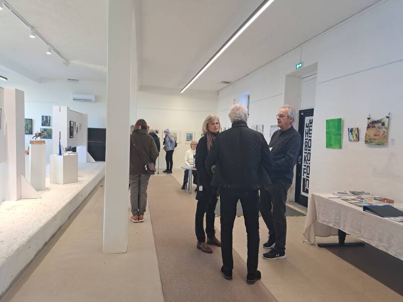 There are always a couple of the exhibiting artists on site who are happy to show and explain their art. Extra many of course at the opening.
