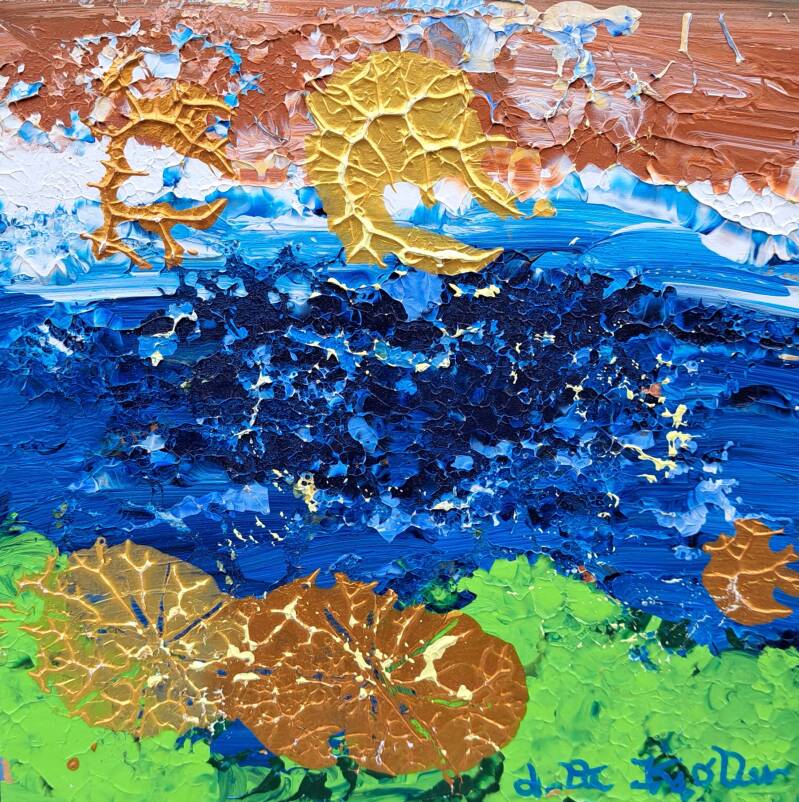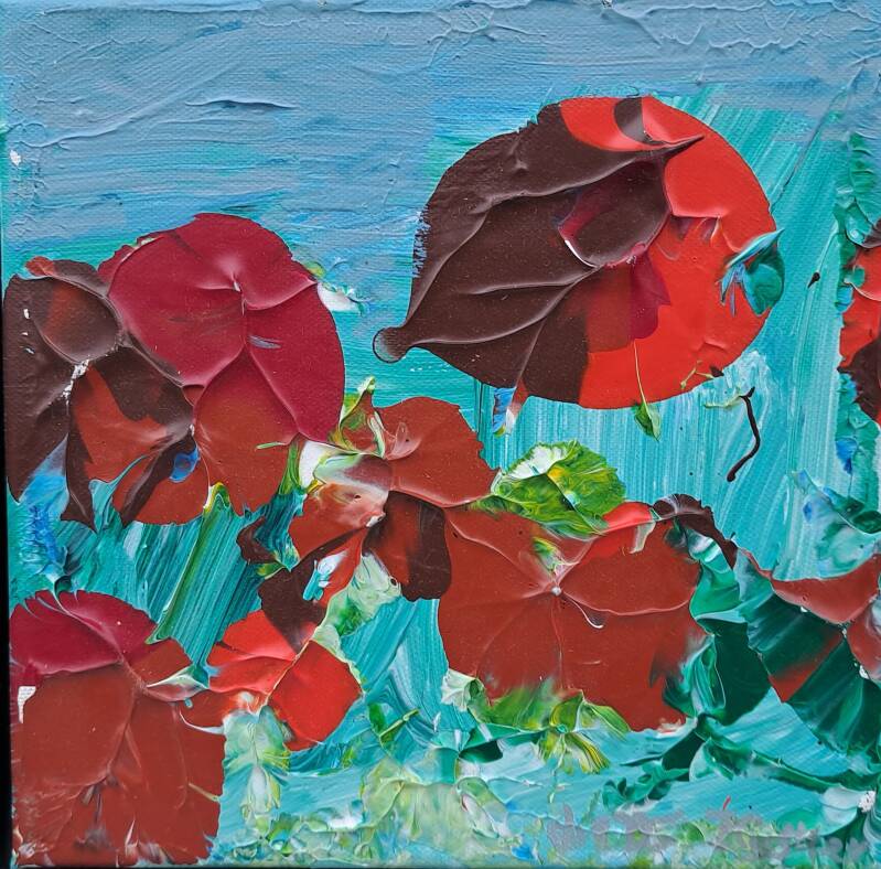 De är alla målade antingen på duk eller ombord med akrylkonstfärg.Det finns fördelar med båda. För att se vad bilden är målad på se text under bilden.
