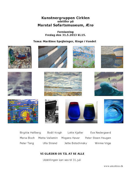 Fernisering 31.5.2013 kl.15. Alle er velkomne. Udstillingen kan ses til 31.juli. Gå på opdagelse i Cirklen og find de forskellige stilarter og retninger og måske osse noget nyt. Cirklen er en udstillingsgruppe med maleri, skulptur, foto, tekstil og grafik, hvis kunstnere alle kommer fra Kunstnerforeningen af 18.november, som blev stiftet til ære for Bertel Thorvaldsen i 1843 og er den ældste kunstnerforening i Danmark, mødested for mange slags kunstnere, osse i dag. Cirklens medlemmer har hver deres udtryk, fra det helt abstrakt ekspressive over i semi abstrakt, landskabs fabulerende, til figur fantasi, og endelig neo- naturalister. Udstillerne på Marstal Søfartsmuseum, arbejder denne gang med temaet Maritime Spejlninger, Ringe i Vandet.
