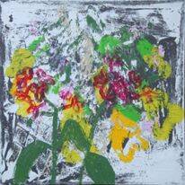 Blomsterbuket. Bouquet of flowers. 40 x 40 cm. Akryl på lærred.